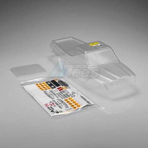 The clear pre-trimmed body is completely factory cut with an incredible edge finish around the wheel wells, along with front and rear bumper areas. The pre-trimmed decals apply easily and quickly, and the included window mask has already been tailored to the exact shapes of the windows for an easy-to-use concept. Appling the grille, and headlights finalize the look, place miscellaneous JConcepts, and Warlord logos about the shell for the best look.