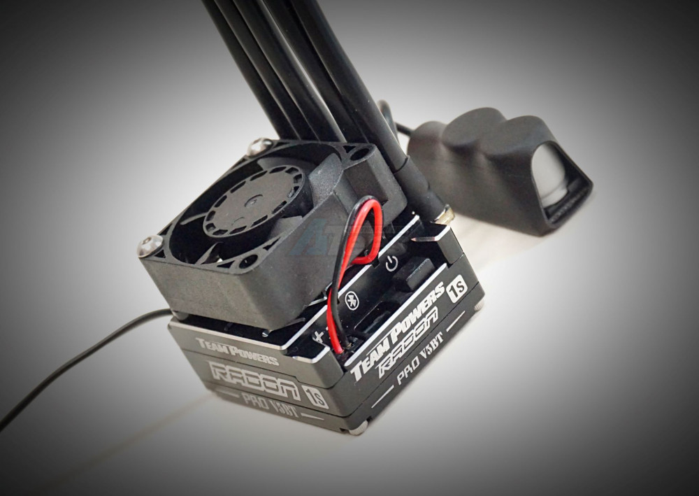 • New PCB layout and new internal hardware design increase the heat dissipation and should be around 10'C lower than radon pro v4.1 working on the same condition. The speed control cooling fan can be removed when running small to medium track for modify/stock racing.