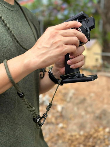 Special feature: Wear your remote sideways like a sling. If you like to walk fast or even jog with your rig, you can use the adjusters to tighten the strap for a snug fit so nothing is loose or swinging around while you move at a higher speed.