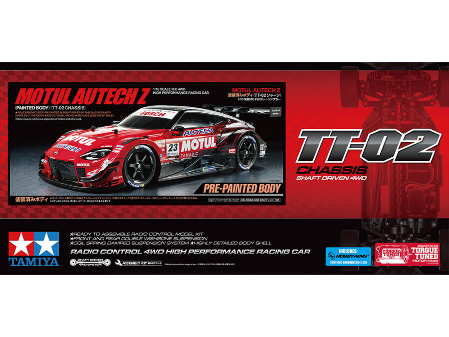 • Factory description: Tamiya TT-02 1/10 RC Motul Autech Z (Painted Body) (TT-02 Chassis)
