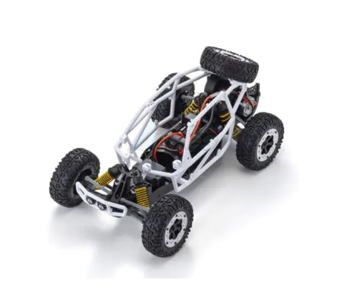 The simple design of Kyosho’s electric (EP) 1/10 scale EZ series buggy delivers the perfect combination of handling, high-performance, and affordability. Since its release in 2012, the EZ series AXXE has been a popular beginner R/C car and also a great second car for more experienced drivers. Following its excellent basic design, the new AXXE 2.0 has been reborn with upgrades to its standard R/C system components and a modified body for compatibility with modern day power sources. Like its sister model the Sandmaster which was renewed in 2023, the AXXE 2.0 has undergone some changes to its chassis design to accommodate various battery types and to reduce contact of the new gearbox with the road surface. The steering servo has also been upgraded to a 6kg high-torque specification that can handle heavy offroad driving loads and the waterproof speed controller (ESC) lets you charge through puddles without a worry. With a new body color scheme, the pipe frame used in real buggy rallies and races combines white pipes with chic gray panels and new decal designs. Choose from two different AXXE 2.0 body color patterns! Sold as a Readyset including body and pre-assembled chassis with R/C system installed, all you need to enjoy R/C car action is a battery for the car, battery charger, and batteries for the transmitter. The simple design structure is easy to disassemble and reassemble, which is optimal for maintenance and tuning.