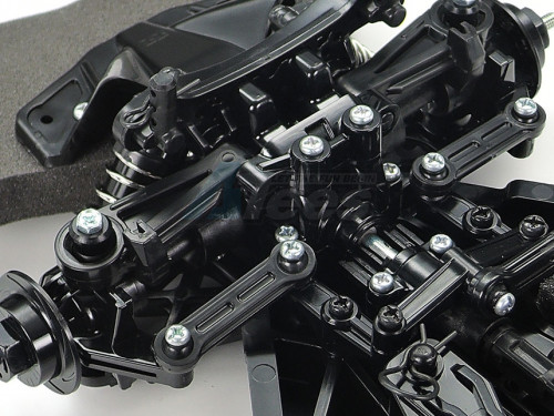 • The model utilizes the efficient shaft-driven 4WD TT-02 chassis which features superior adaptability and stability.