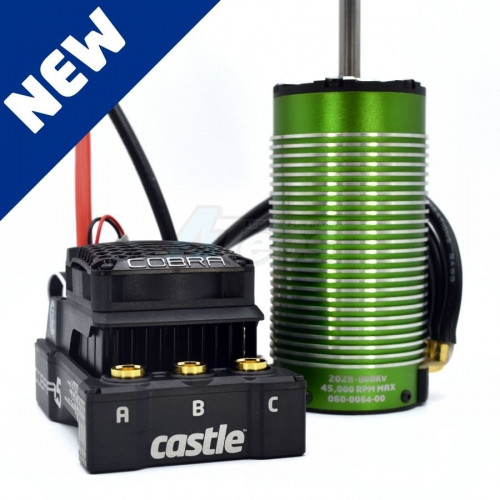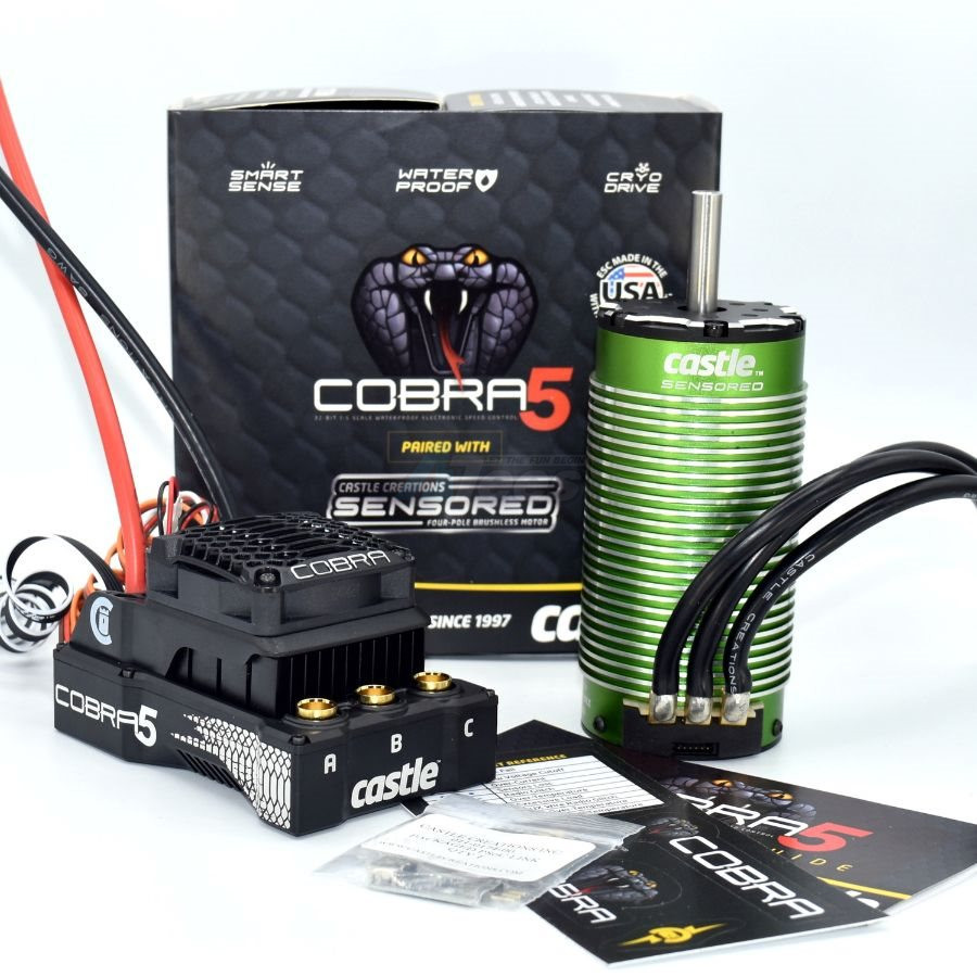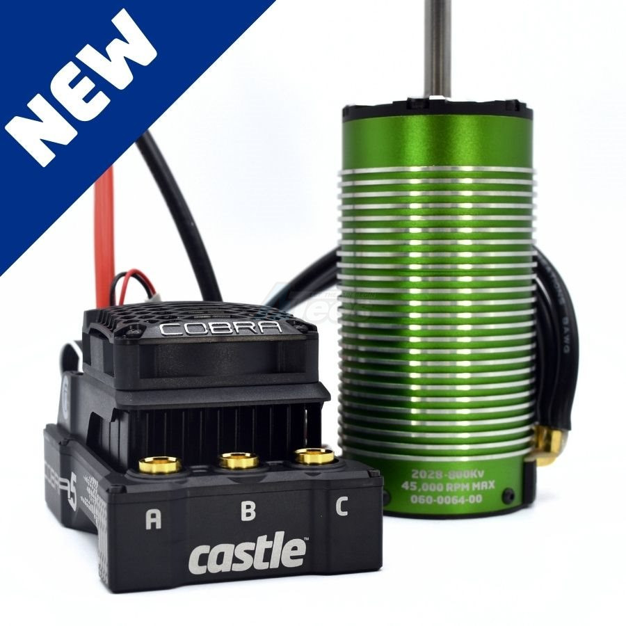 Pairing the Cobra 5 with the Castle 4-POLE 12-SLOT SENSORED 2028-800KV will allow heavy, high-performance rigs like the Arrma Kraton 8s (1/5th)™, Arrma Outcast 8s (1/5th)™, Losi DBXL-E™ and HPI® Baja 5B™ to experience controllable low-end ranges without sacrificing power, punch, or speed.