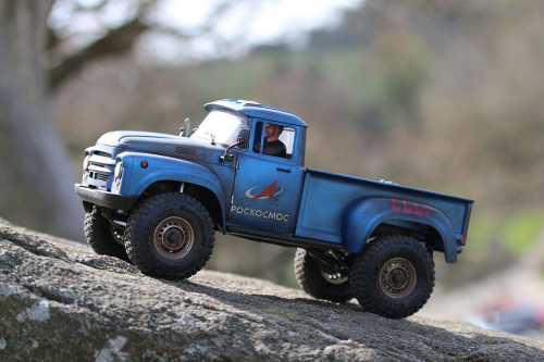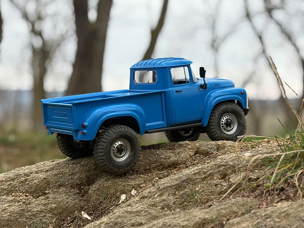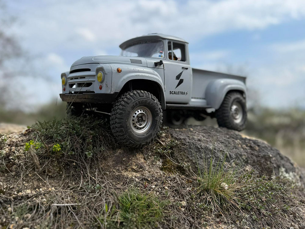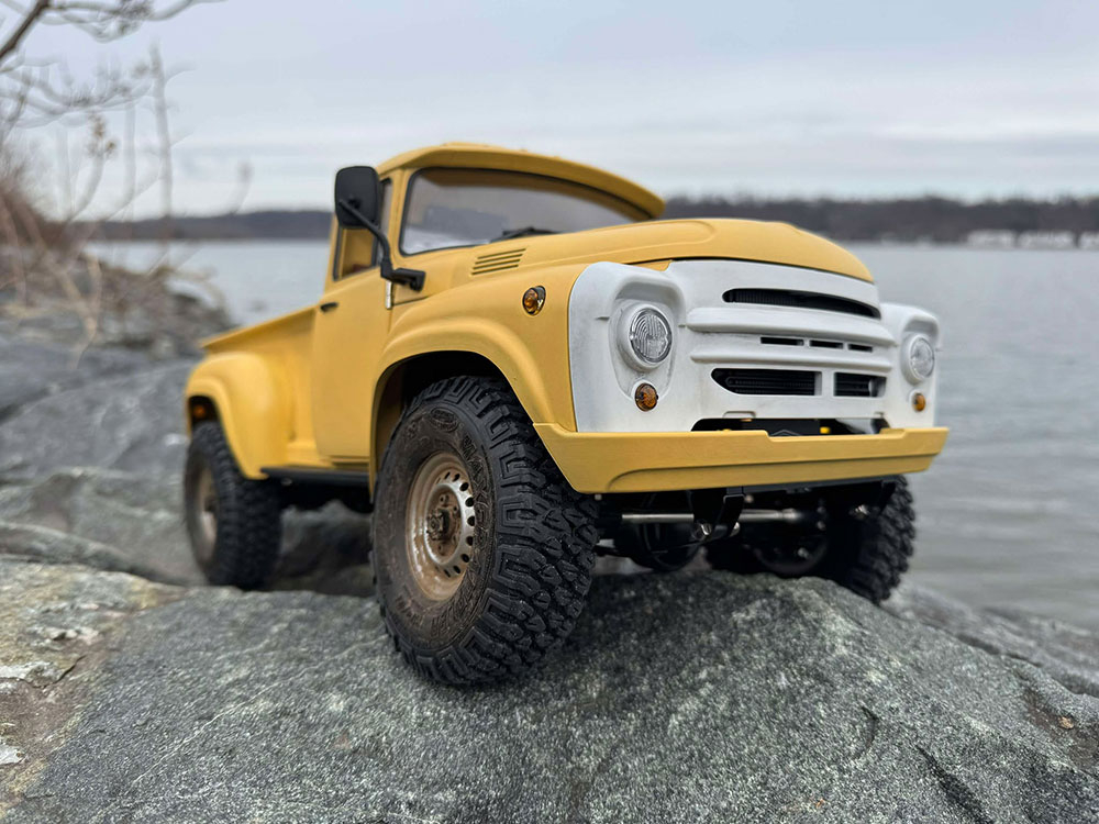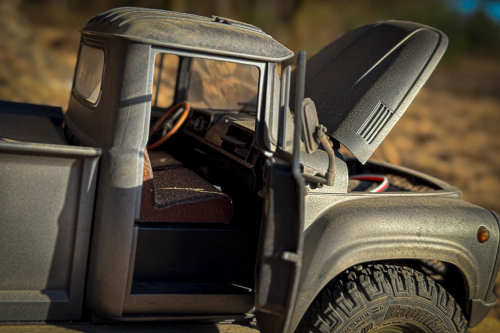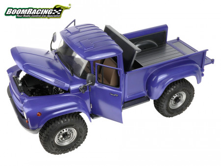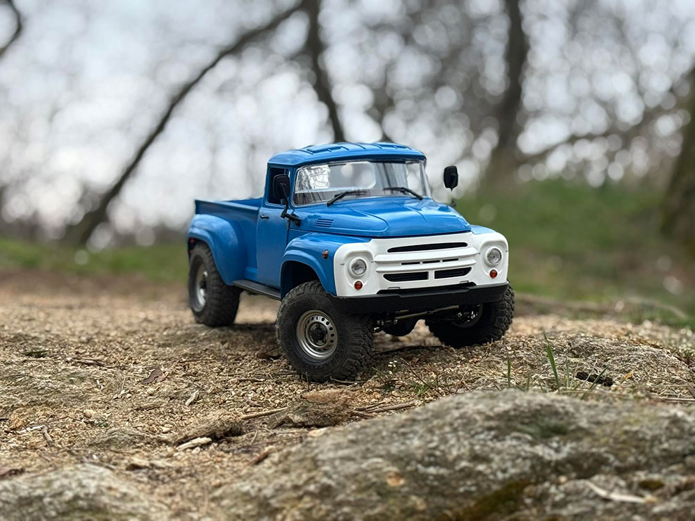 The ZIL Pickup is a fully molded hard body with a 267mm wheelbase. Inspired by classic 1950s–60s pickups, it features a detailed interior, functional doors, hood and tailgate, radiator, scale engine space, and a separate full drop bed with a built-in storage compartment for your RC battery. It has 10 LED light buckets and lenses for the optional KUDU light kit (future release). Side steps are integrated with the chassis.