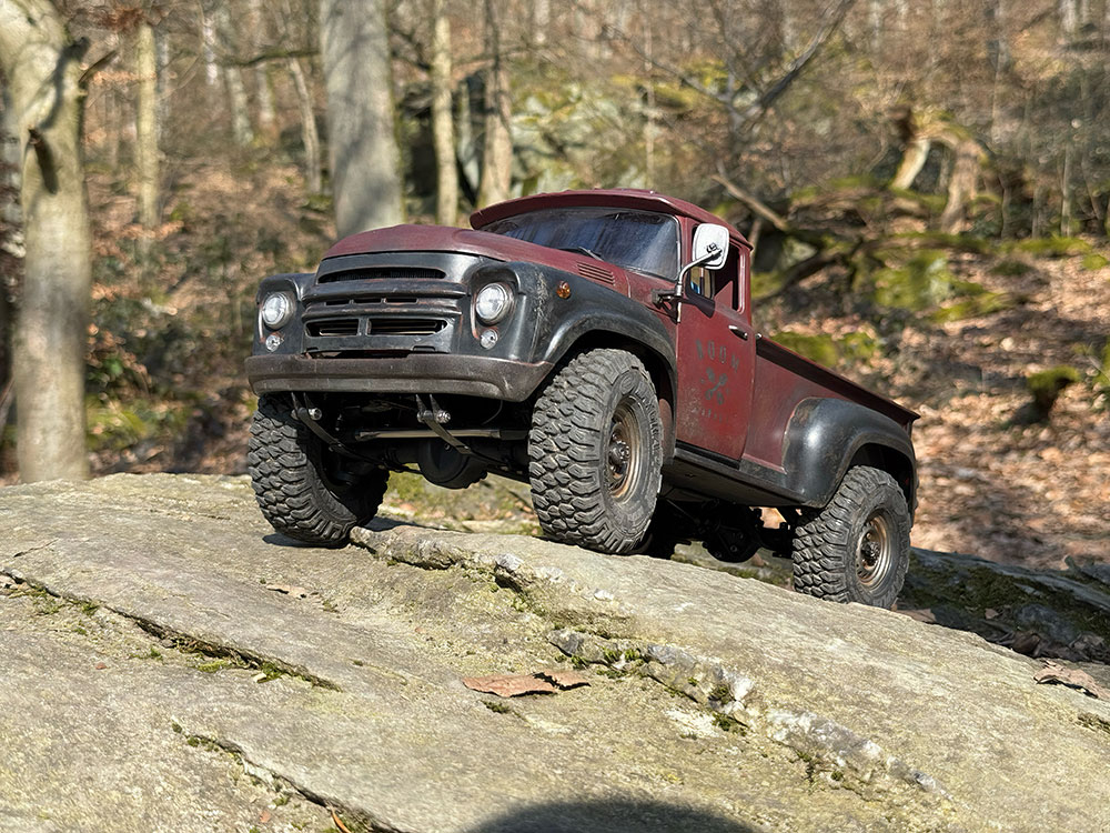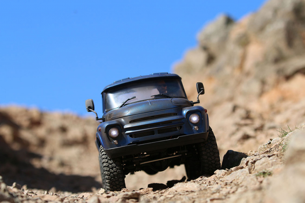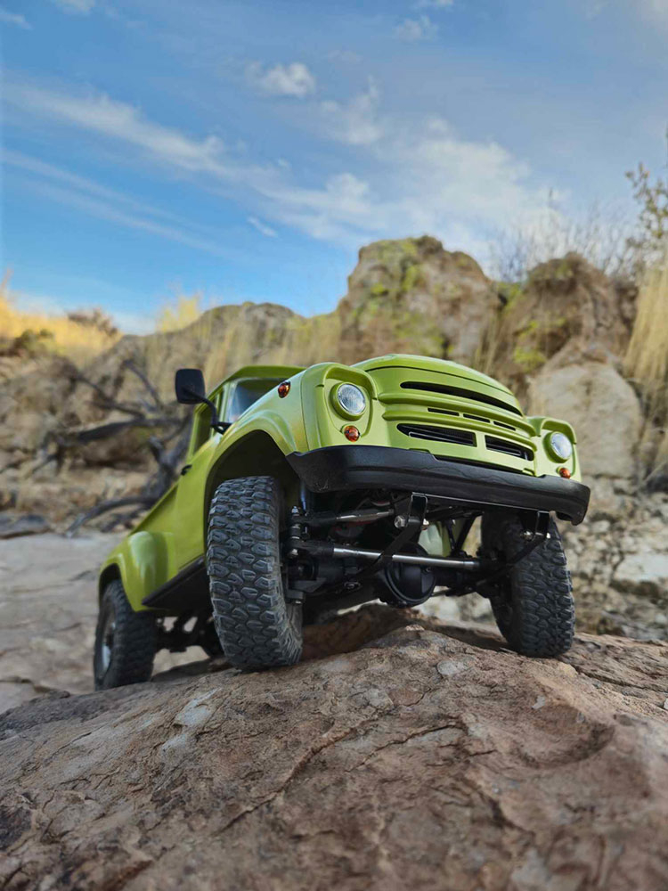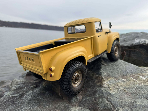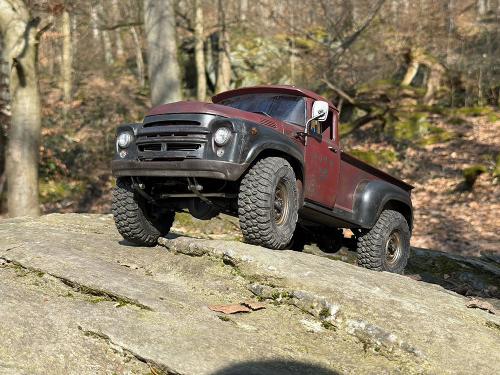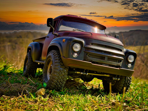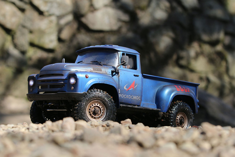 The ZIL Pickup is a fully molded hard body with a 267mm wheelbase. Inspired by classic 1950s–60s pickups, it features a detailed interior, functional doors, hood and tailgate, radiator, scale engine space, and a separate full drop bed with a built-in storage compartment for your RC battery. It has 10 LED light buckets and lenses for the optional KUDU light kit (future release). Side steps are integrated with the chassis.