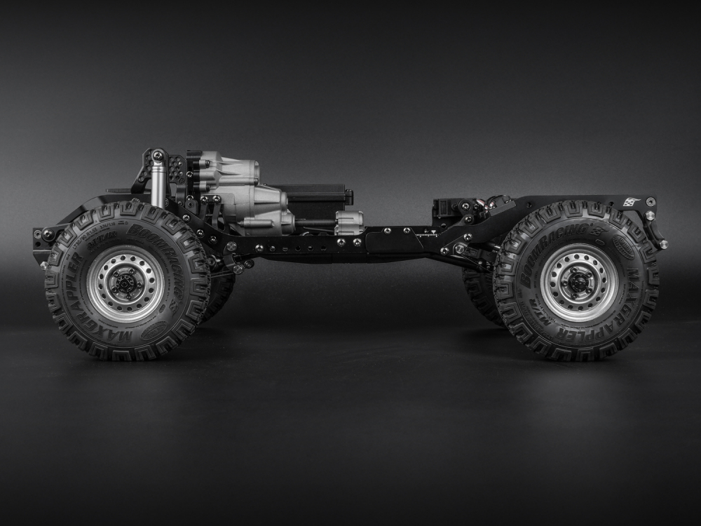 At its core, the BRX01 AWB runs on the proven BRX80 PHAT™ axles, with an all-new C-hub and knuckle design using kingpins and brass bushings for enhanced durability and long-term performance. The axles use our popular proprietary AR44 heavy-duty hardened steel triangular keyed bevel helical cut 30/8T diff gears, with the same but reversed cut gears in the rear axle. The rear axle counter-rotates, which results in near-zero torque twist for chassis stability.