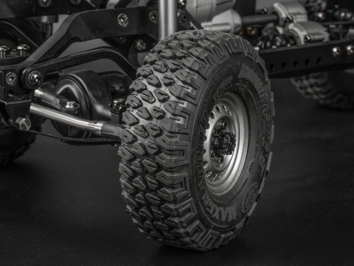 Included are 1.55" MAXGRAPPLER™ Gekko (Black) Compound tires, single-stage foam inserts, and 1.55" classic steelies beadlock wheels that are reversible for versatility.