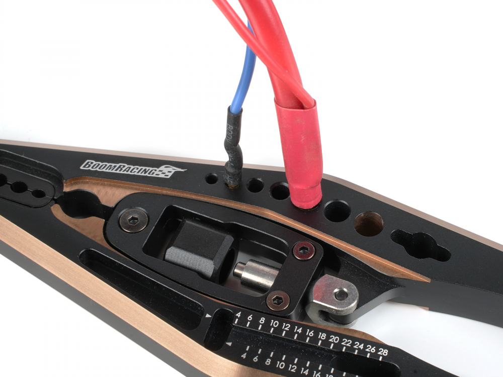 Multipurpose Shock Pliers (#BRT10065) Features: + Multipurpose tool for your workbench + True straight pivot ball puncher for accuracy and easy operation + Interchangeable shock shaft clamp for 3.0 / 3.5 / 4.0mm + Stainless steel and nylon jaws are both included + Billet 7075 aluminum handles + Holds different bullet hole sizes 2 / 2.4 / 2.8 / 3.2 / 4 / 4.4 / 4.8 / 5.2mm + Holds small rod end with pre-installed 2mm-hole pivot ball + Holds rod end without pivot ball + Holds different connector types: XT60 / T-Plug (Deans) / EC2 / EC3 / Tamiya + Metric screw measuring ruler for countersunk, round and socket head