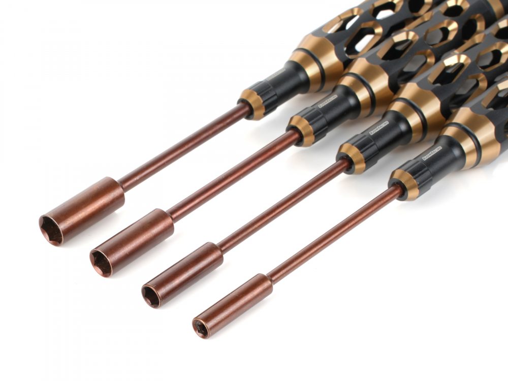 Driver / Wrench Features: + Lightweight design + Comfortable and firm grip + Choke-down grip for speed and control + 100mm tool tips + Thin-walled 7mm and 8mm wrenches for accessing smaller holes + Identifiers on handle and handle top