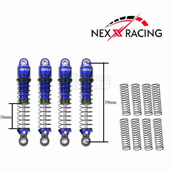 • Factory description: Nexx Racing 59mm Long Oil Shock (4pcs) for CR18P EVO/EVO PRO/ HPI Venture 18 Flux/FX118 (Blue)