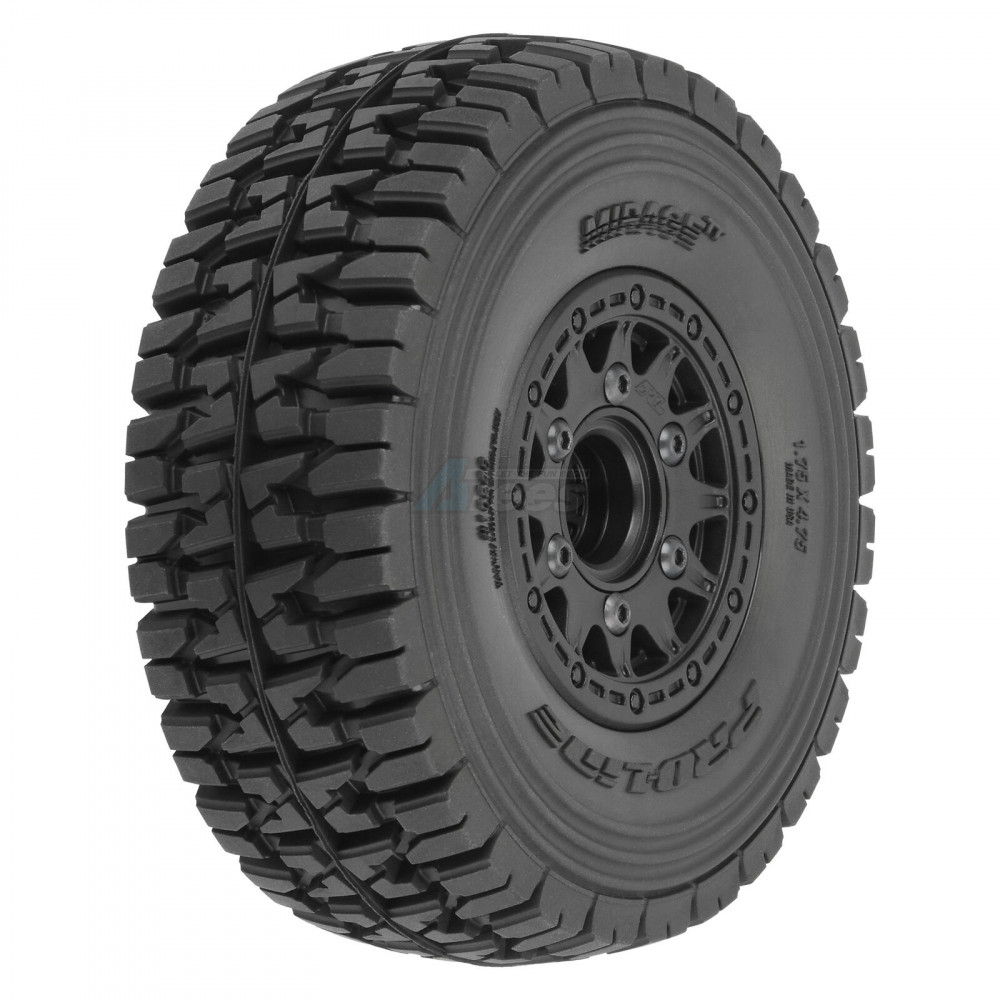 This is a pair of Mirage TT Belted Tires. Pro-Line is proud to announce a tire and wheel combo for your Short Course Desert Truck! The Mirage TT is inspired by full-size trophy truck tires to create a super-scale look while also giving your rig the ultimate performance upgrade with Belted tire technology!