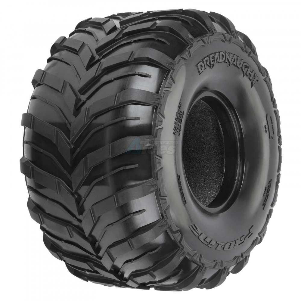 • This is a pair of Dreadnaught Tires for the Losi® LMT 2.0. Pro-Line has you covered with high-performance Dreadnaught tires made specifically for your truck! The Dreadnaught tires feature sipes inside the aggressive chevron-style tread for exceptional scale realism and increases forward bite on any surface. As you should expect from Pro-Line, the Dreadnaught tire is made from soft and sticky rubber that will give your LMT 2.0 maximum acceleration with stunt wheelie-popping traction. Get your own set today!