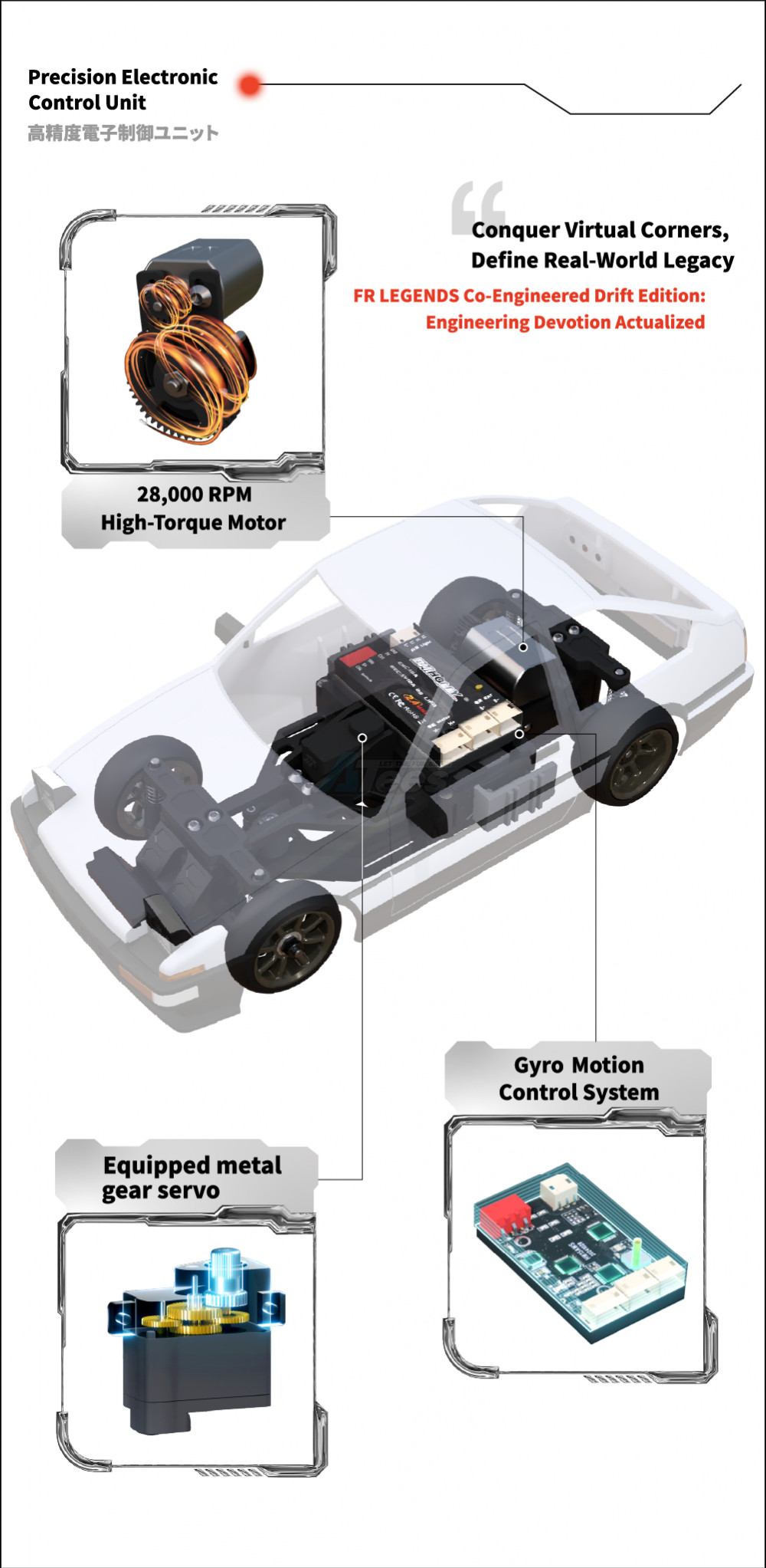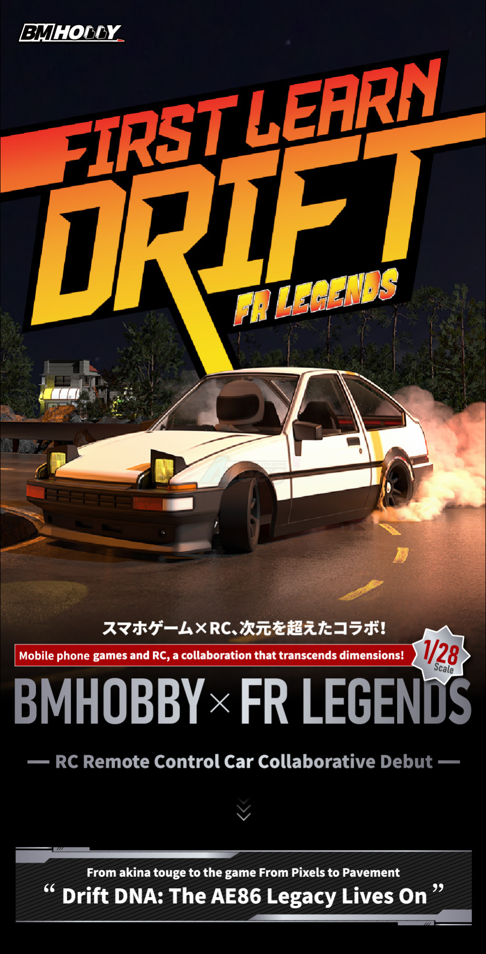 • When mobile games come to real life and become the 1/28 scale RWD micro RC car, BM Racing brings this brand new RTR RWD micro RC car— FLD ( First Learn Drift), it's the best choice for RC drift beginners.