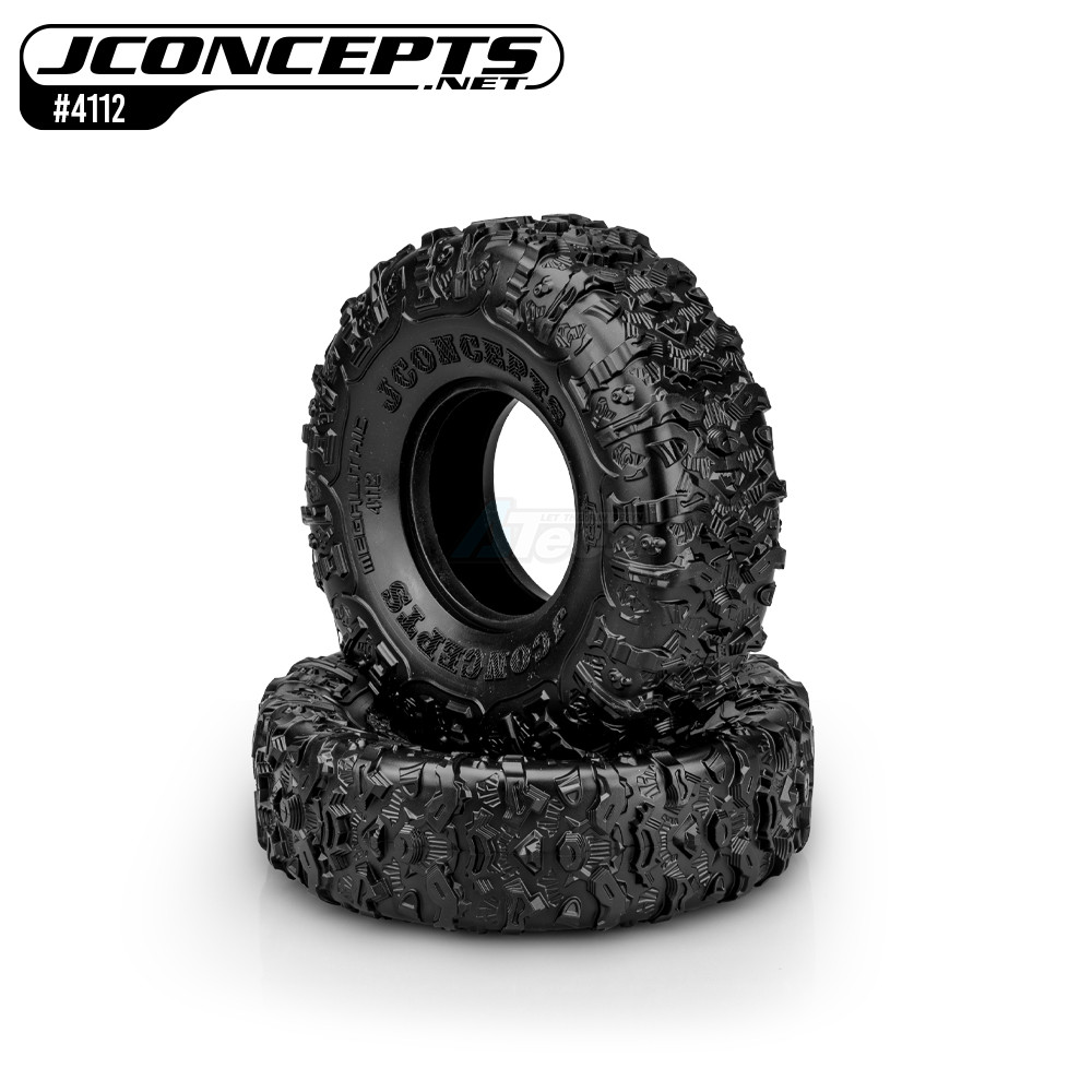 - Nothing gets enthusiasts amped in the crawling off-road community like a fresh new tire. Coming off the heels of successful designs such as the Landmines, Scorpios, and Tusk, JConcepts presents the 2.2” Megalithic. Built to the popular 5.25” outside diameter competition dimension, the Megalithic is the most detailed JConcepts tire ever produced. When JConcepts R&D sat down to conceptualize ideas and celebratory projects for its 20th anniversary, the team decided to produce an intricate crawling tire.