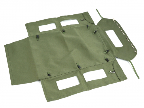 • This is a full canvas soft top for the Series Land Rover 109 Full Hood Set with Side Windows. The canvas can roll up on both sides and in the back with straps on the top to lock in place.