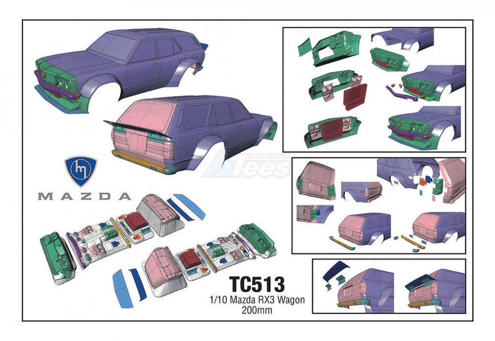 • Factory description: Team C 1/10 Mazda RX3 Wagon 200mm