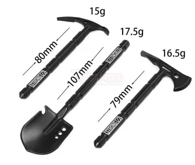 • Factory description: Team Raffee Co. Scale Accessories - 1/10 Tools Set (Shovel Axe Pickaxe) - OR & BK