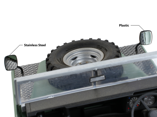 • Factory description: Boom Racing Boom Racing BRX02 109 Stainless Steel Mirror-Finish Side & Rear Mirrors Set for Land Rover® Series III