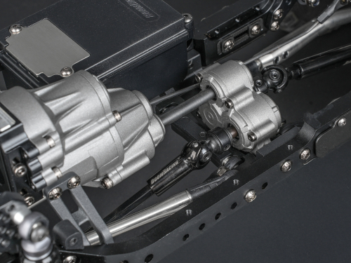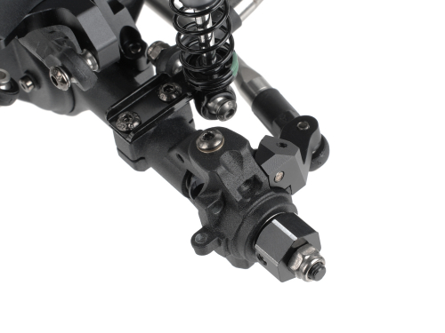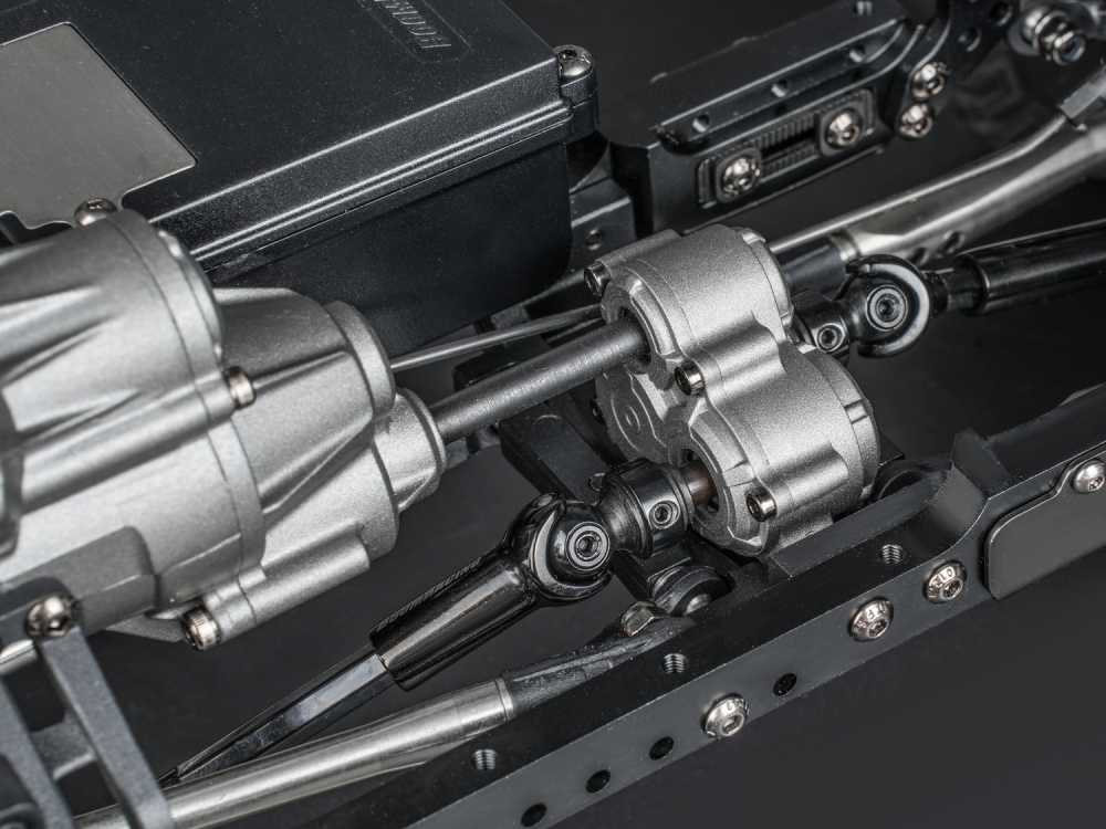 At the foundation are the proven BRX80 PHAT™ axles, now upgraded with a new C-hub and knuckle design using kingpins and brass bushings for improved durability and long-term precision. Inside, our proprietary AR44 heavy-duty hardened steel triangular-keyed, bevel helical-cut 30/8T differential gears are used front and rear, with reversed-cut gears in the rear axle. The counter-rotating rear axle effectively cancels torque twist, resulting in exceptional chassis stability under load.