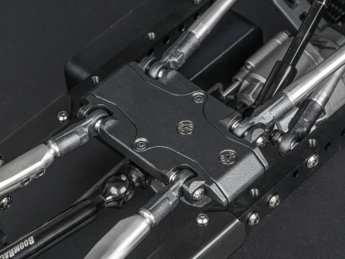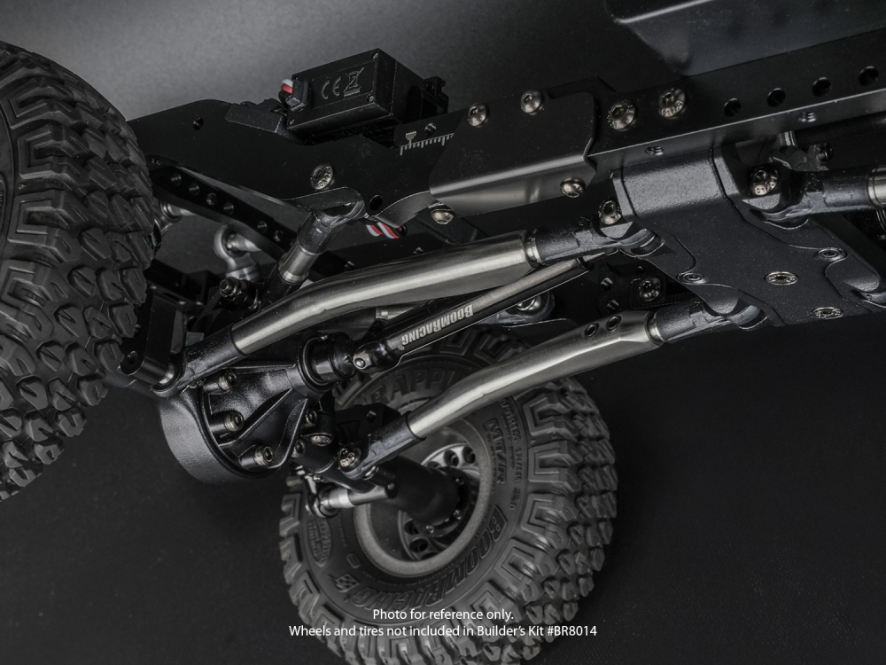 Complete stainless steel links come standard on the BRX01 AWB Link chassis, adding strategically placed low-mounted weight to lower the center of gravity and enhance crawling performance. The rear lower links are fully adjustable and feature a built-in high-clearance design for improved obstacle clearance on the trail.