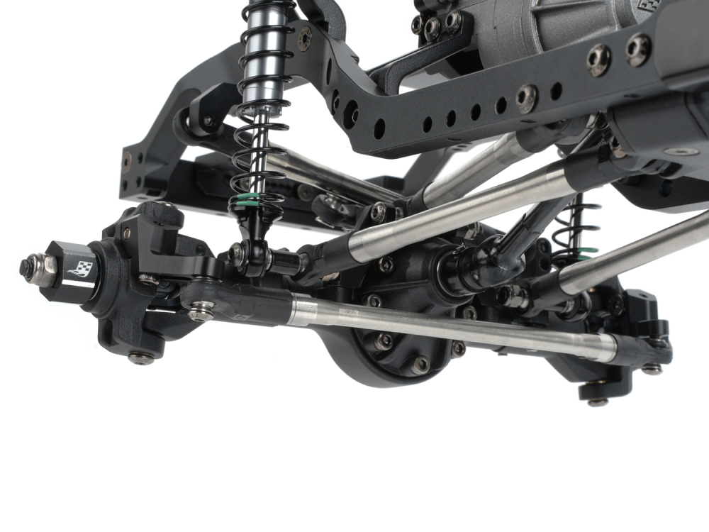 Final fine-tuning is handled by the adjustable rear lower high-clearance stainless steel links, which provide up to 20mm of adjustment, ensuring proper axle positioning and driveline alignment across the full wheelbase range.
