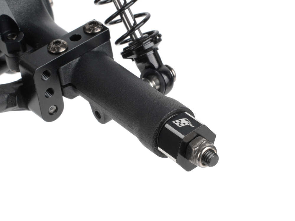 Optimized for scale performance and long-term reliability, the KUDU™ coilover shocks feature billet aluminum cylinder bodies for strength, hardened steel shock shafts with titanium nitride coating, and aluminum spring adjusters that allow unlimited preload tuning. Replaceable plastic pivot retainers provide smooth, low-friction articulation, while BADASS™ stainless steel pivot balls resist corrosion and enable high-angle movement for massive articulation.