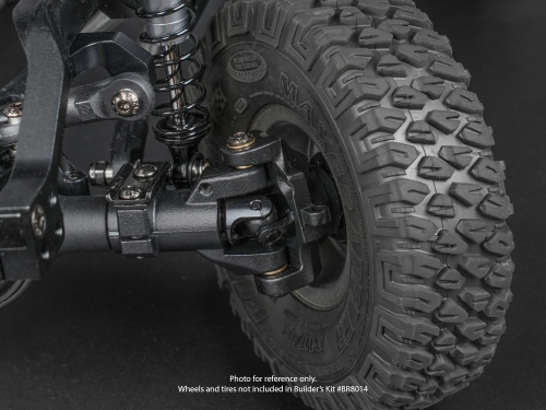 Suspension duties are handled by solid front and rear BRX80 PHAT™ straight axles, paired with high-performance KUDU™ coilover oil-filled scale shocks, measuring 70 mm up front and 80 mm at the rear.
