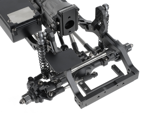 The chassis is ready for a standard-size internal servo winch (with internal spool) by installing the optional Servo Winch Mount Kit for BRX01 AWB & BRX01 (#BRLC70227).
