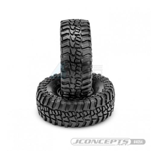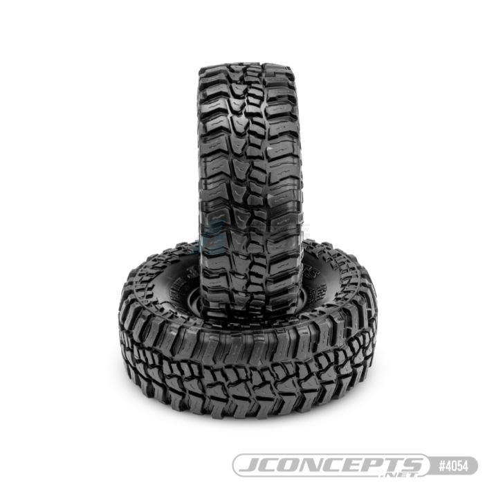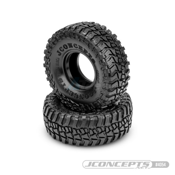 Momentum based sidewall attributes have a progression pattern consistent with forward direction. The main ingredient in the sidewall, the low height wear bar ribs connect everything together to help function as a single until during tight climbs and narrow spaces. Recessed cuts in the blocks, extrusions in timely areas help detail out one of the most sophisticated crawling tires in the JConcepts line-up. Recessed JConcepts logo with inner hatching takes position in multiple areas while the tire name, part number 4054 L/R is marked for easy identification.