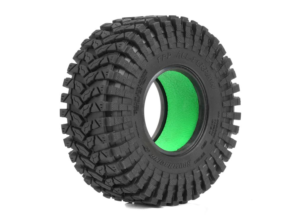 Factory description: Boom Racing TPD™ 1.9" GEKKO™ BLACK 4.25"x1.65" / 108x41.9mm RC Crawler Tire + Rock Monster™ Green Foam Insert (2)