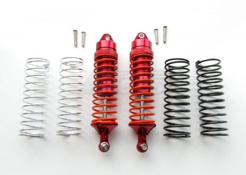 Aluminum Rear Adjustable Spring Damper With Aluminum Ball Top & Ball Ends - 1pr Set (1.3mm, 1.5mm, 1.7mm Coil Spring & 4mm Thick Shaft) Red