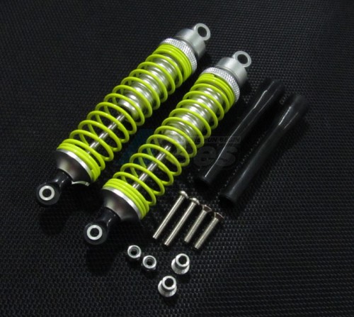 Aluminum Rear Adjustable Spring Damper (100mm) With Aluminum Collars & Screws & Plastic Black Dust Proof & Lock Nuts - 1pr Set Silver