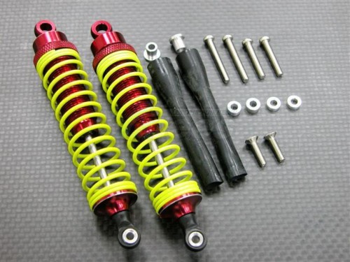 GPM Racing Aluminum Ball Top Damper (105mm) With 1.2mm Coil Spring & Aluminum Collars & Washers & Screws & Dust-proof Black Plastic Cover - 1pr Set Red