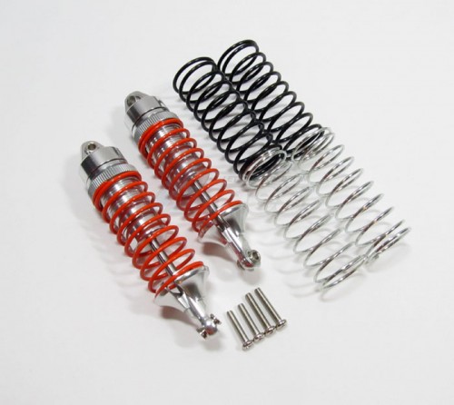 Aluminum Rear Adjustable Spring Damper With Aluminum Ball Top & Ball Ends - 1pr Set (1.3mm, 1.5mm, 1.7mm Coil Spring & 4mm Thick Shaft) Silver