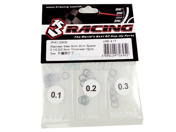 - Factory description: 3Racing 3Racing Sakura Zero S Stainless Steel 5mm Shim Spacer 0.1/0.2/0.3mm Thickness 10pcs Each