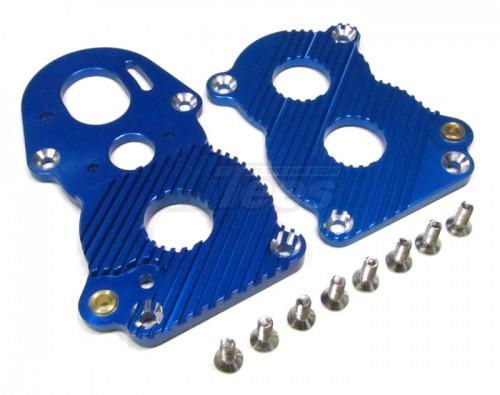 Aluminum Gear Box Heatsink Plate With Fins - 2pcs Set Blue