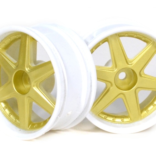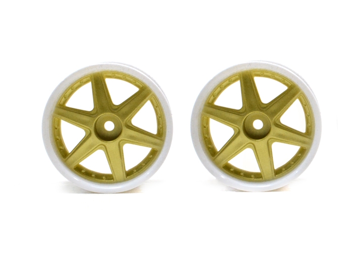 6-Spoke White Outer Ring Wheel Set (2Pcs) For 1/10 RC Car (6mm Offset) Gold by Boom Racing