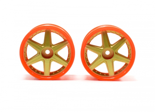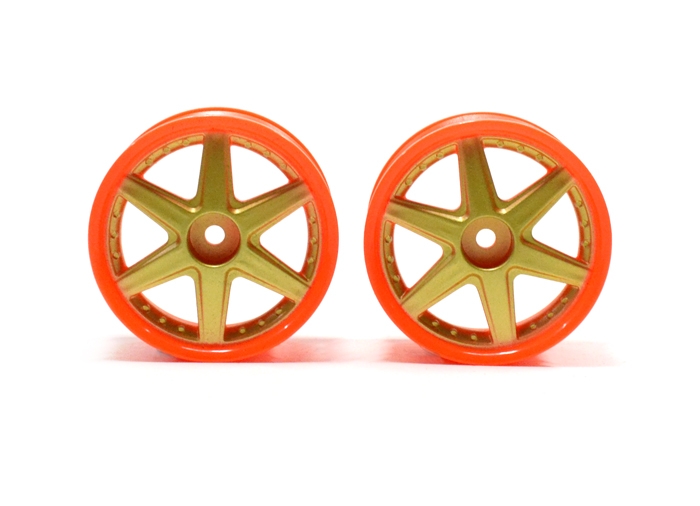 6-Spoke Orange Outer Ring Wheel Set (2Pcs) For 1/10 RC Car (3mm Offset) Gold by Boom Racing