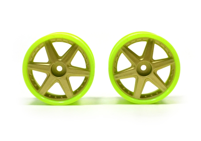 6-spoke Green Outer Ring Wheel Set (2pcs) For 1/10 RC Car (9mm Offset) by Boom Racing