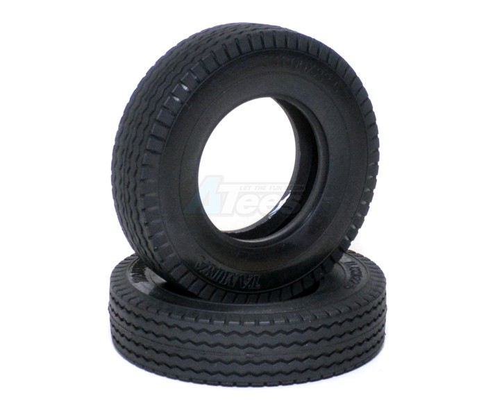 • These tractor truck tires are made of a hard compound material which is well-suited to use on Tamiya 1/14 scale tractor trucks. Using these tires on the front of the trailer combats over-steer and rear sliding to provide a more stable driving experience. Fitting them to the trailer means smoother cornering to lower traction.