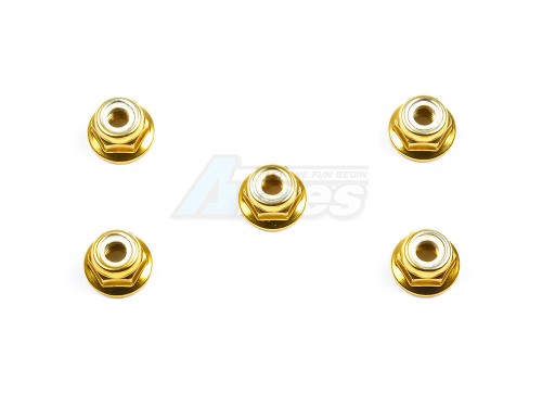 Anodized Flange Lock Nuts 4mm (Gold 5pcs) by Tamiya