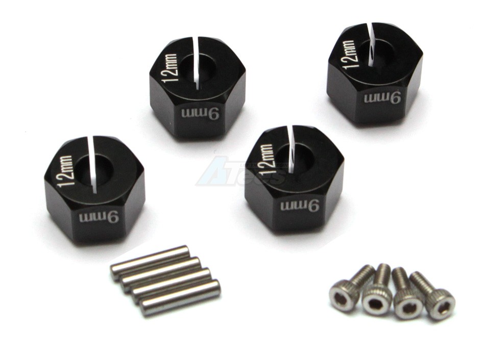 Aluminum Hex Adapter (12mmx9mm) - 4pcs Set For Axial Exoscx10wraith Black
