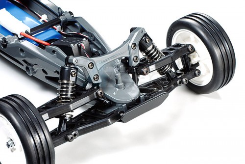 The stylish slimline form of this chassis stems from its lightweight yet durable monocoque frame, which features a longitudinally-positioned battery and the R/C equipment along the centerline for excellent balance.