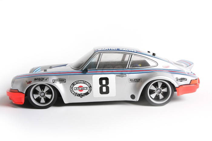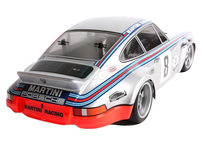 • The Porsche 911 Carrera RSR joins the Tamiya TT-02 chassis touring car entry level line-up. It is a legendary Group 4 car which had a body weighing just 900kg with a 300hp-plus horizontally opposed 6-cylinder engine, and still holds a place in automotive enthusiast's hearts today thanks to its exploits with racing teams the world over. In 1973, the year of its release, it won the European GT Championship, plus the renowned 24 Hours of Daytona and 12 Hours of Sebring races. The works prototype in predominantly silver livery with the Martini stripe also took the checkered flag in the famed Targa Florio race.