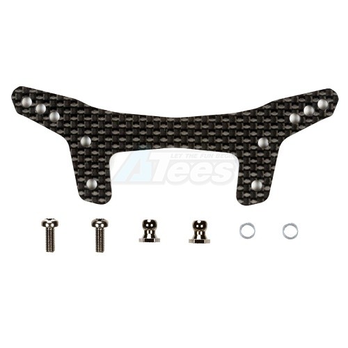 - Highly rigid 3mm thick carbon front damper stay. Not only does it enhance the damper operation effect, but it also expands the setting range by setting three mounting positions.