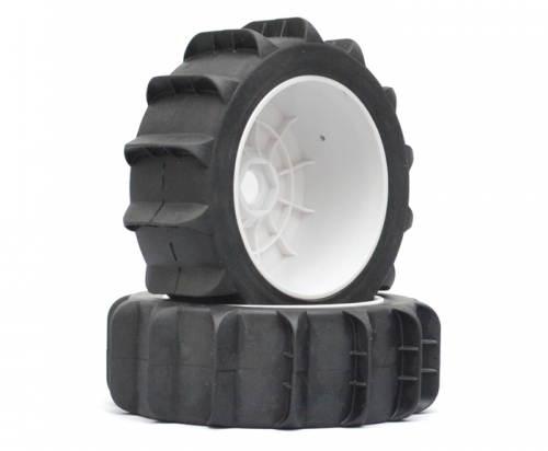 1/8 Buggy Disk Spoke Wheel & Desert Tire Set (1 Pair) White by Boom Racing