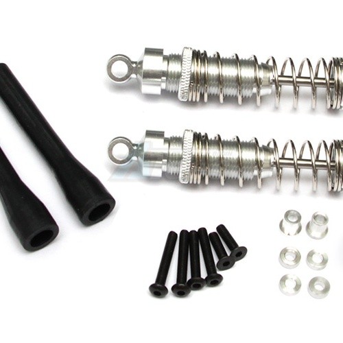 Offroad - Aluminum Ball Top Damper (85mm) With Aluminum Collars & Washers & Screws & Dust-proof Black Plastic Cover - 1pr Set Silver