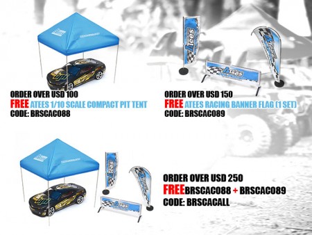 Seen the scale flags, tents and barriers in pictures? Now you can get a set for yourself, absolutely free! Build your own scale garage or track with these scale accessories.